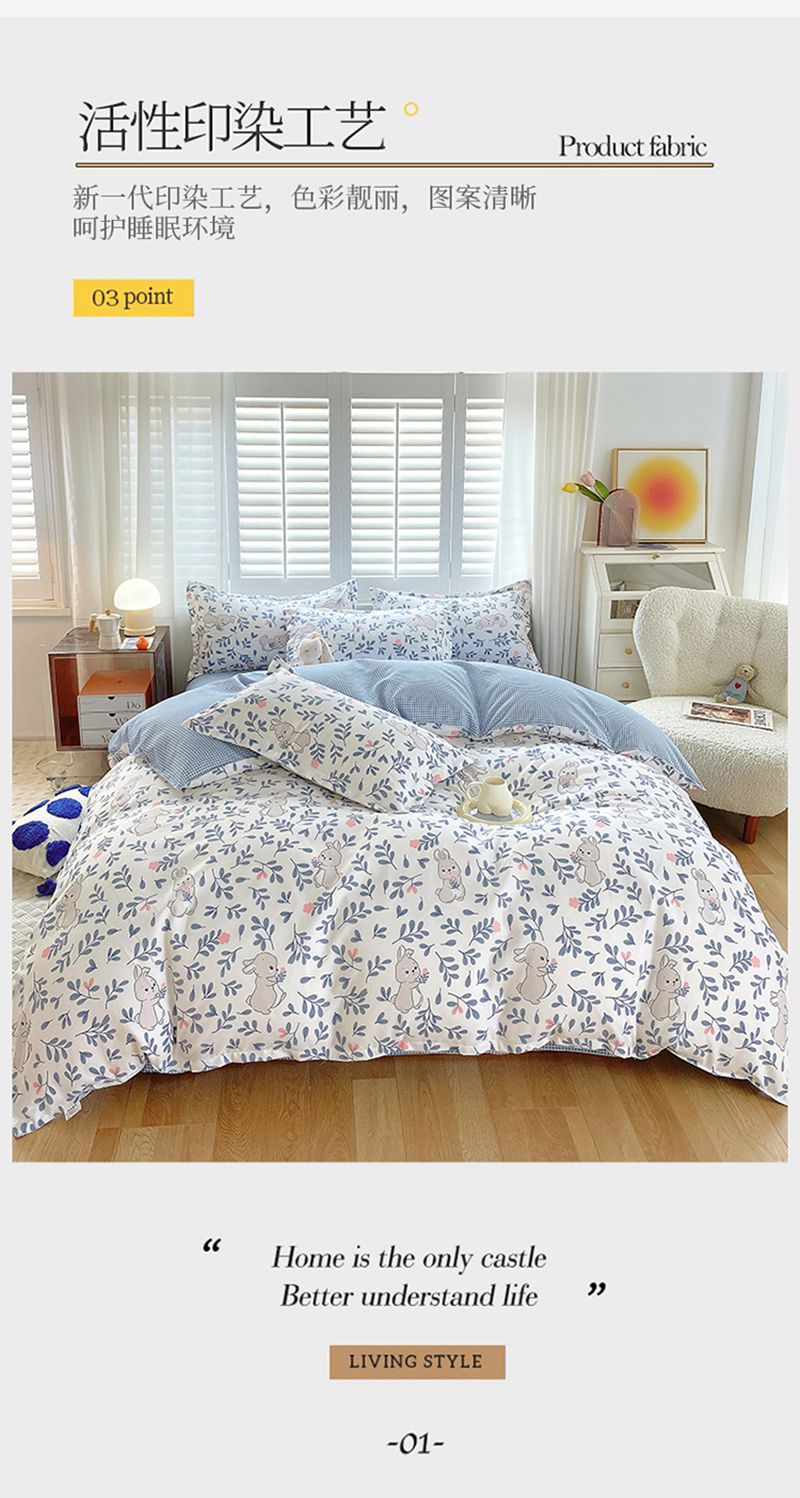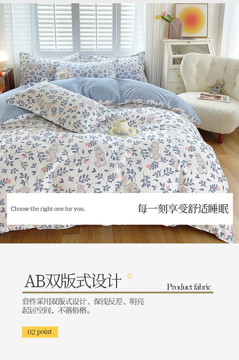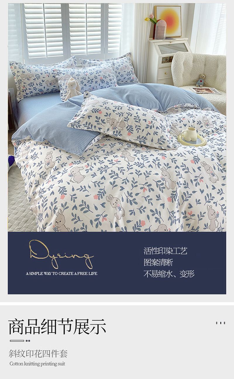 四件套尺寸:被套:200*230cm、 床单:230*230cn、 枕套:48*74cm*2个