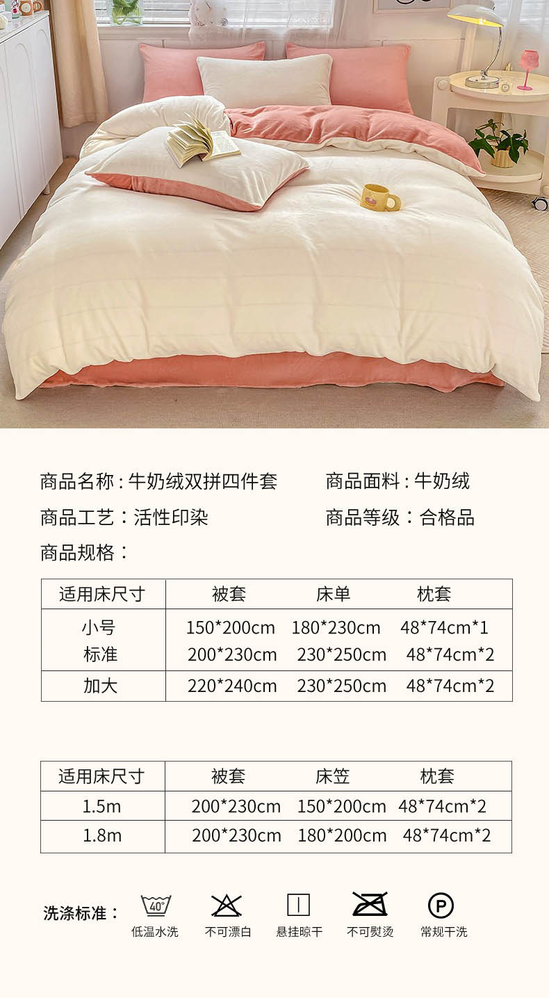 床笠款1.8米床:被套200cm*230cm 床笠180cm*200cm 枕套48cm*74cm*2