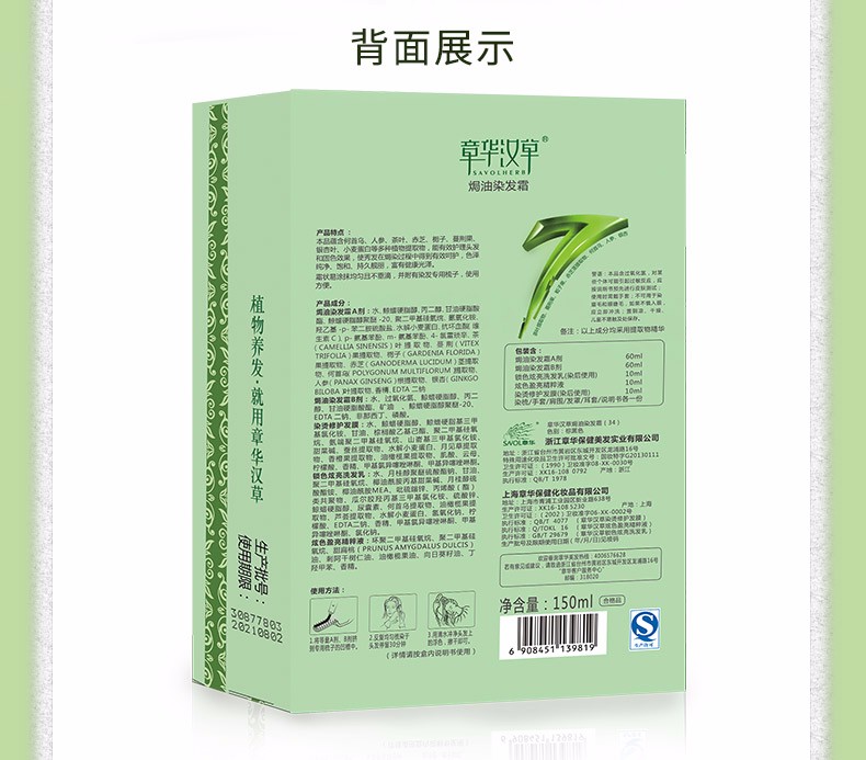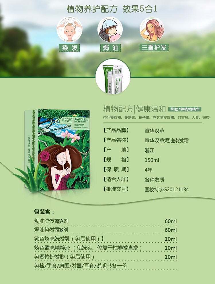 章华汉草 焗油染发霜150ml(自然黑/棕黑/深咖啡/栗子棕)