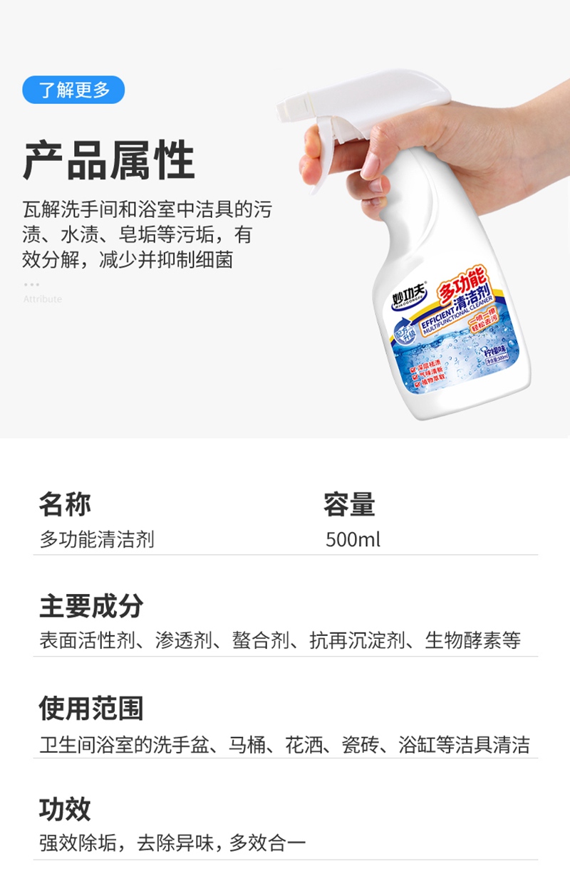 妙功夫 多功能清洗剂500ml*2瓶(一个喷头)