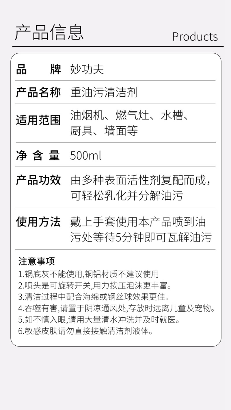 妙功夫 重油污清洗剂500ml*2瓶(一个喷头)