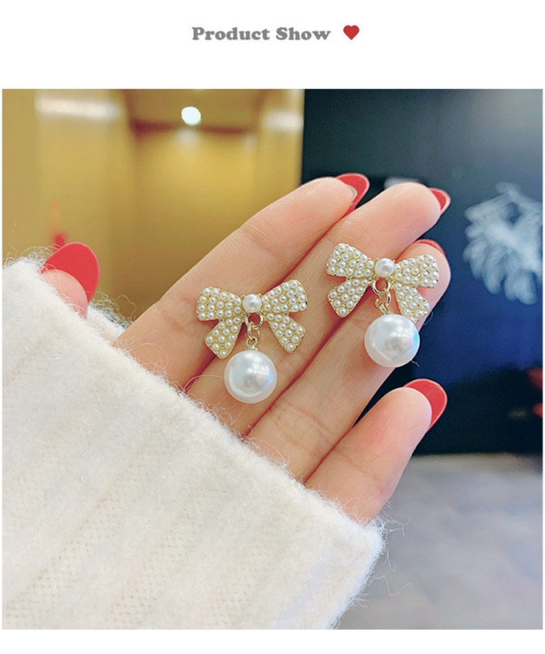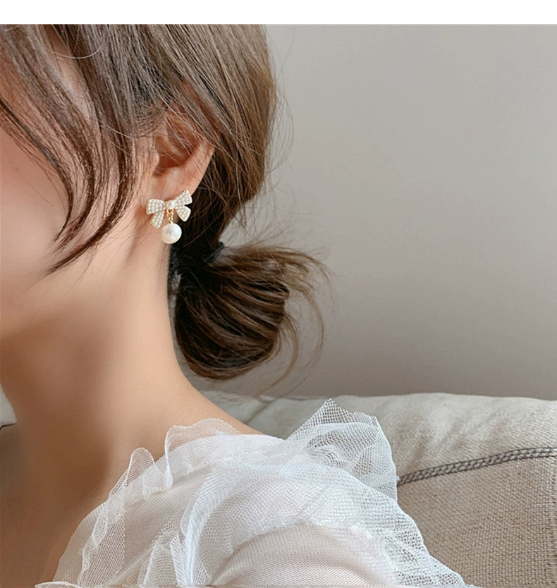 缔晶 法式简约蝴蝶结耳钉E2082