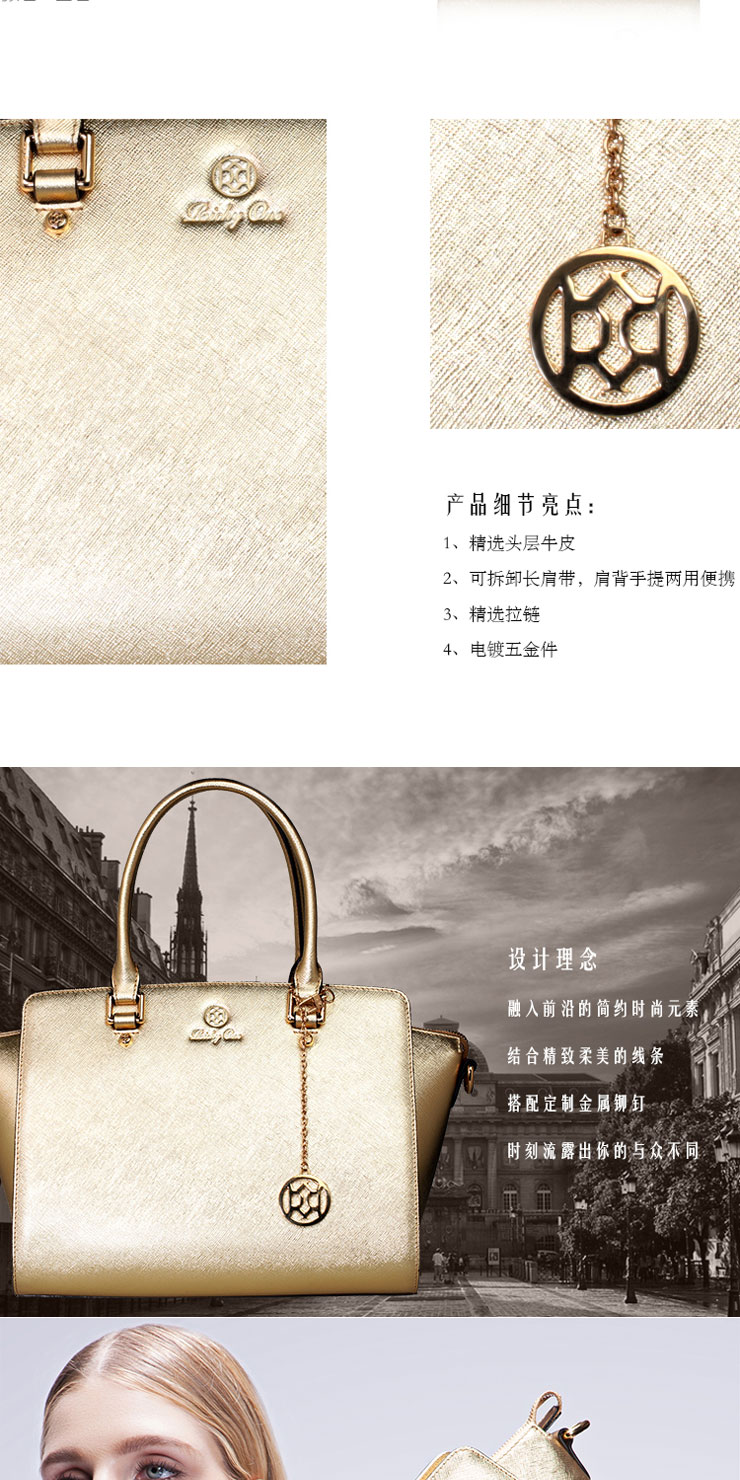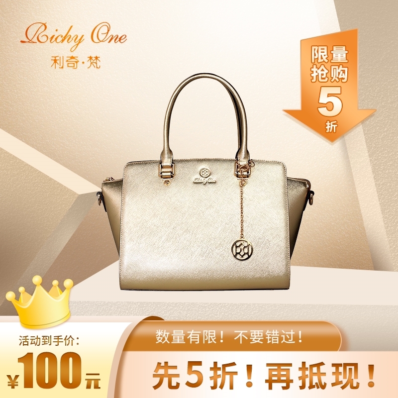 Richy One 赛琳娜系列 金色真皮波纹包(会员日)