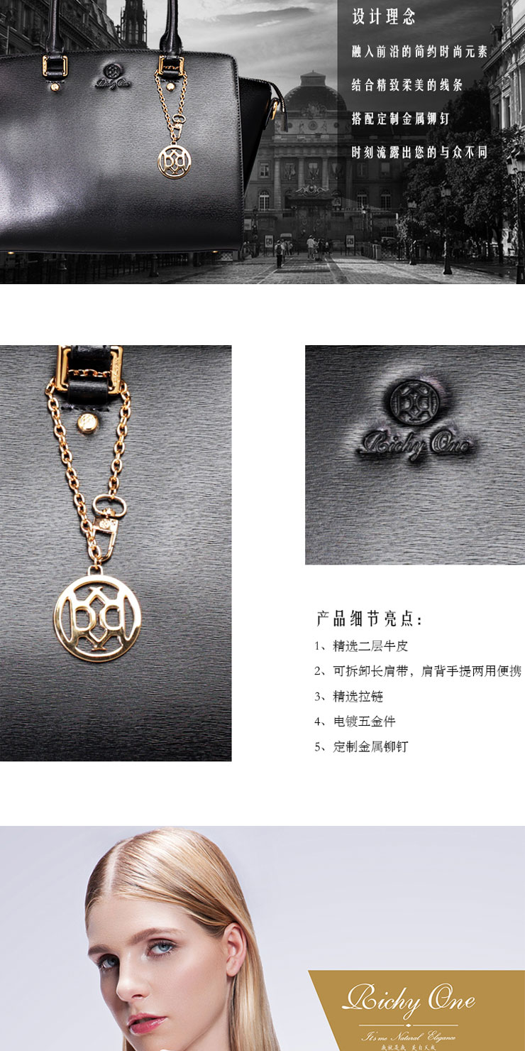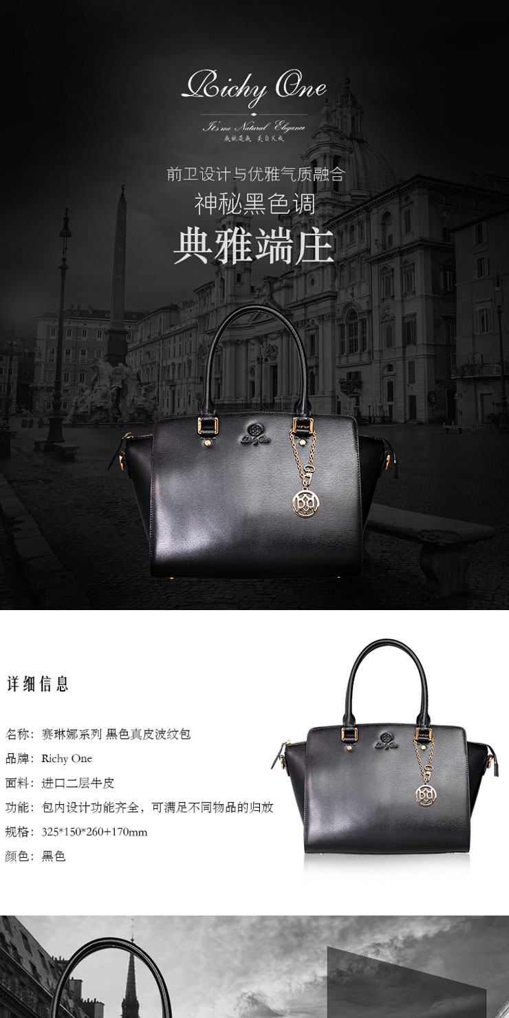 Richy One 赛琳娜系列 黑色真皮波纹包(会员日)