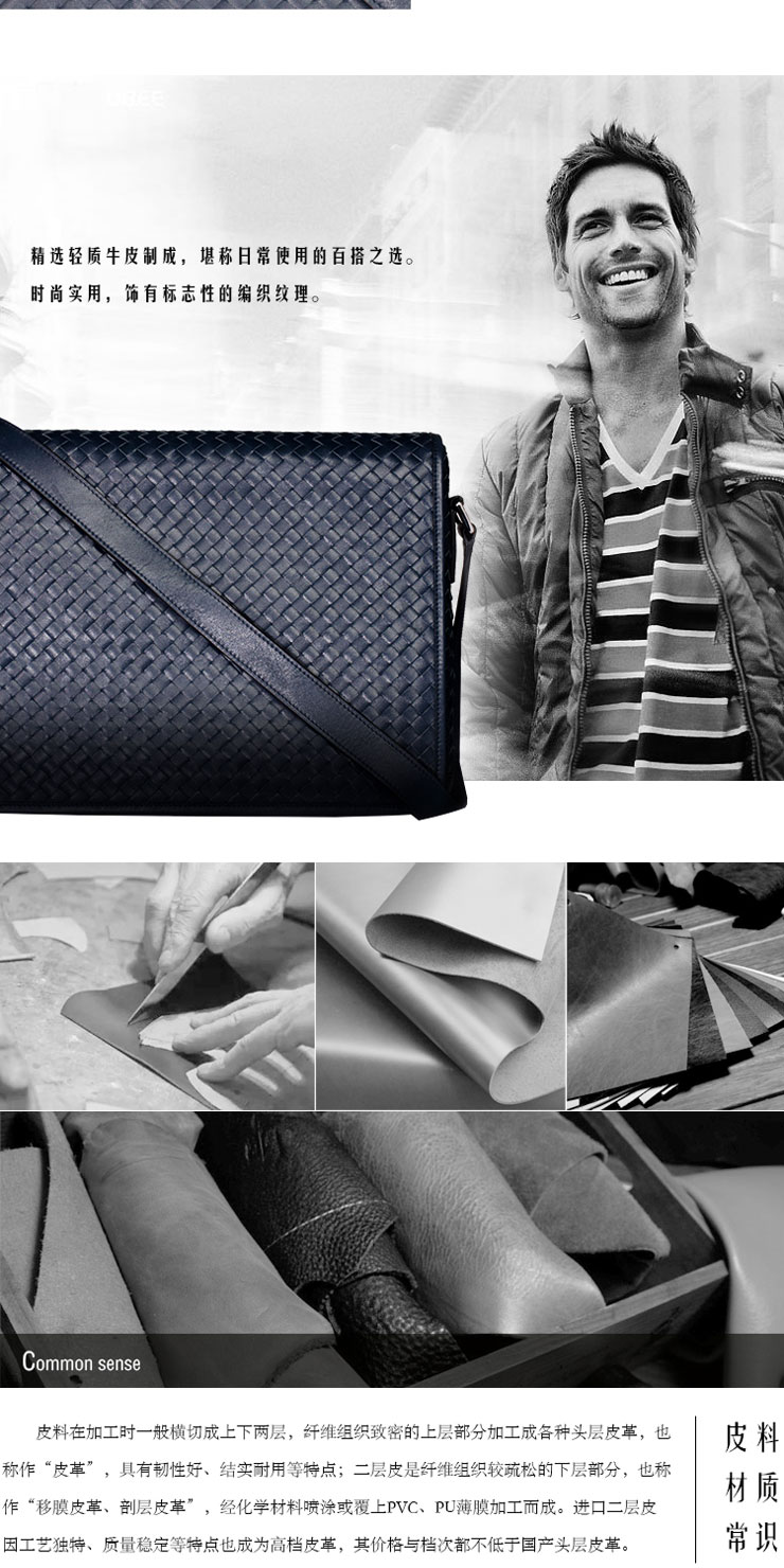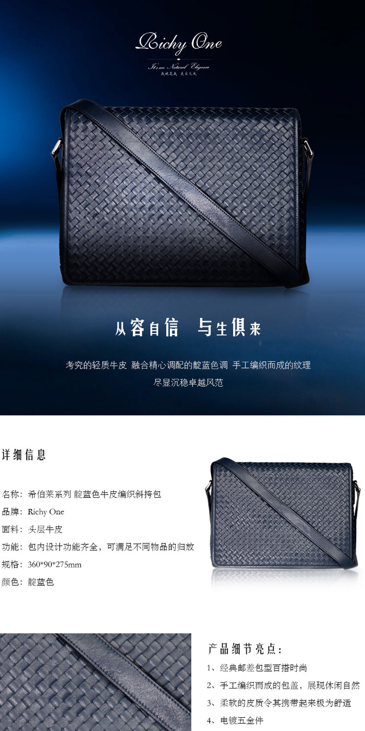 Richy One 希伯莱系列 靛蓝色牛皮编织斜挎包(会员日)