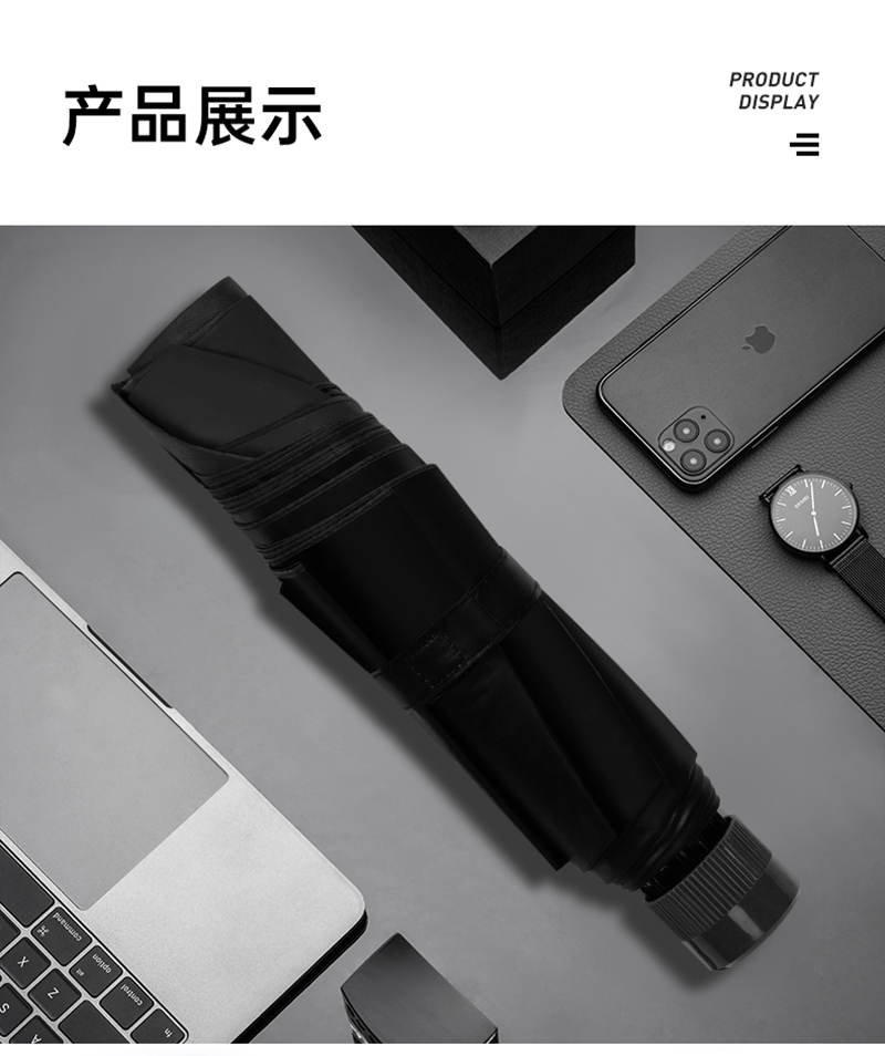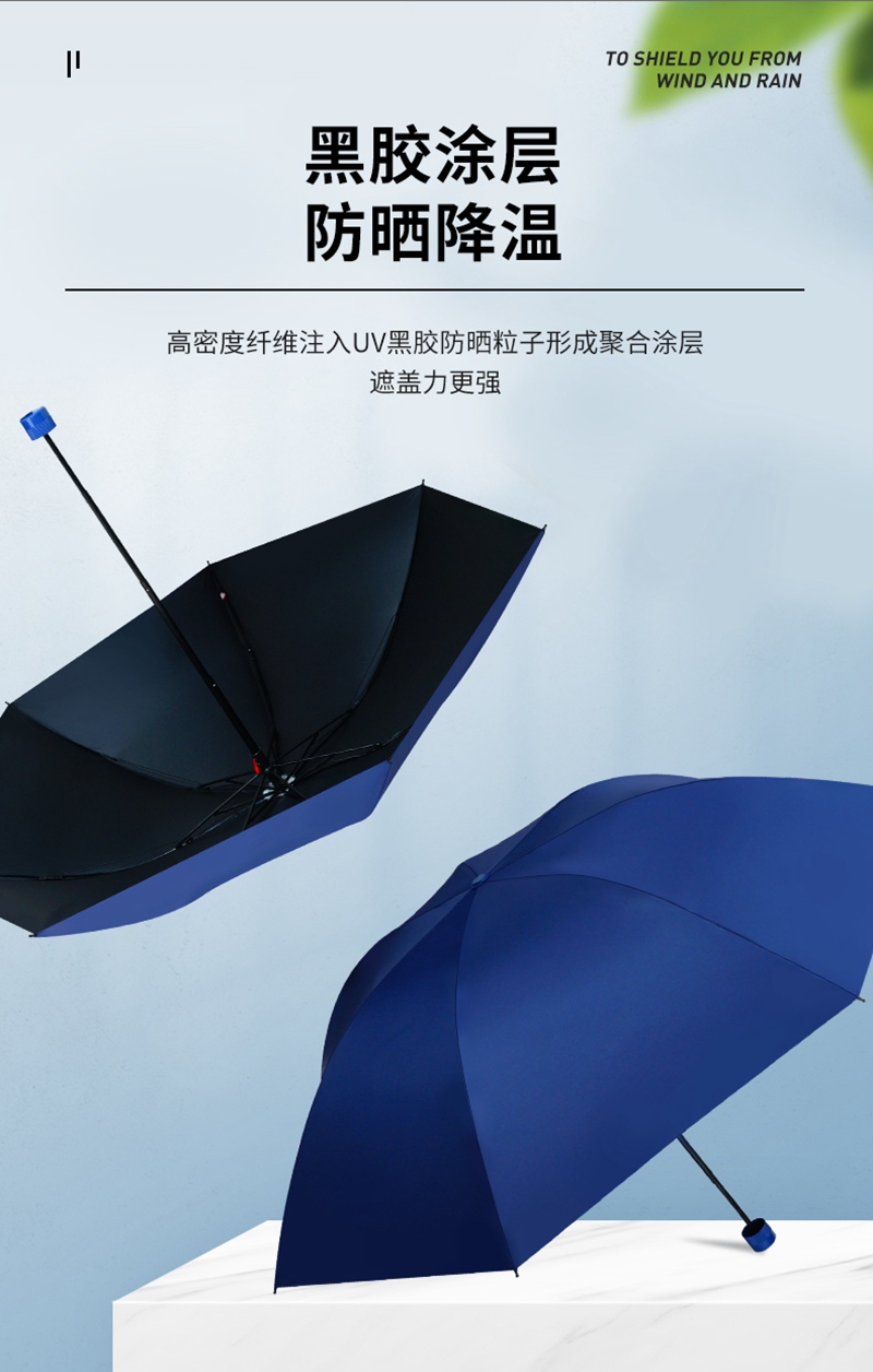 红叶 三折PG黑胶伞(藏青色/黑色随机发货)