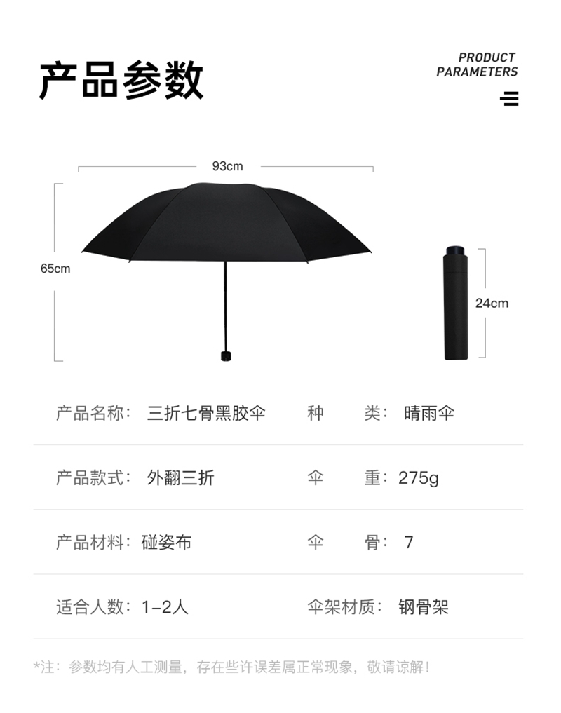 红叶 三折七骨黑胶伞(藏青色/黑色随机发货)