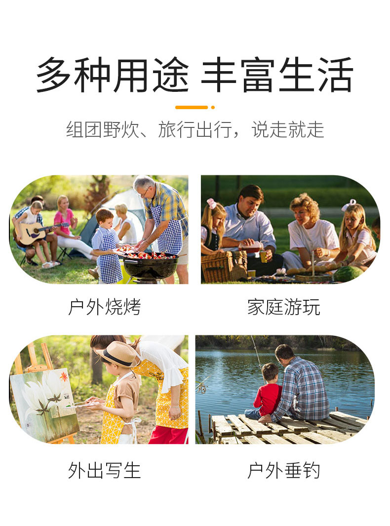 配件:帐篷*1、帐篷包*1、防雨罩*1、防风绳*4、地钉*8